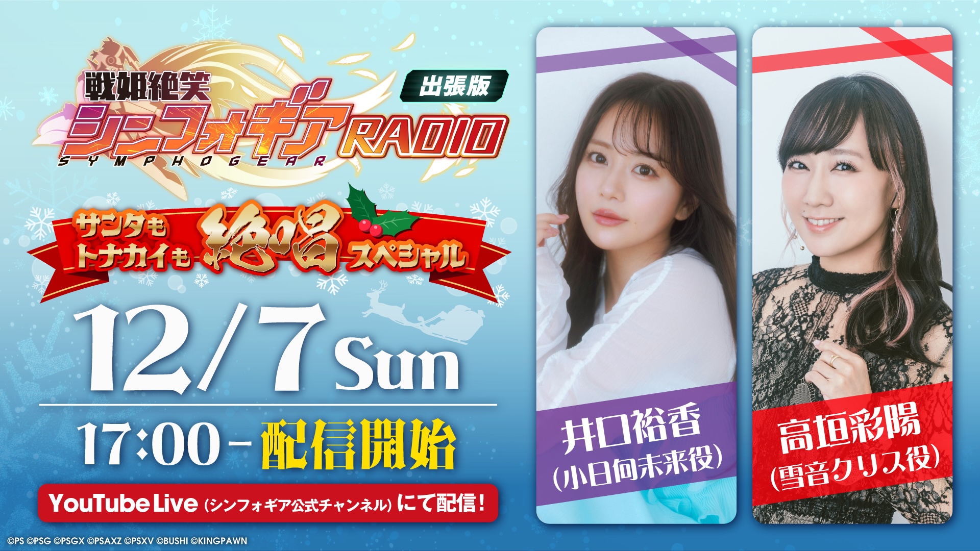 『戦姫絶笑シンフォギアRADIO』出張版〜サンタもトナカイも絶唱スペシャル〜を、12月7日(日)17:00より『戦姫絶唱シンフォギア』Official YouTube Channelにて生配信します!