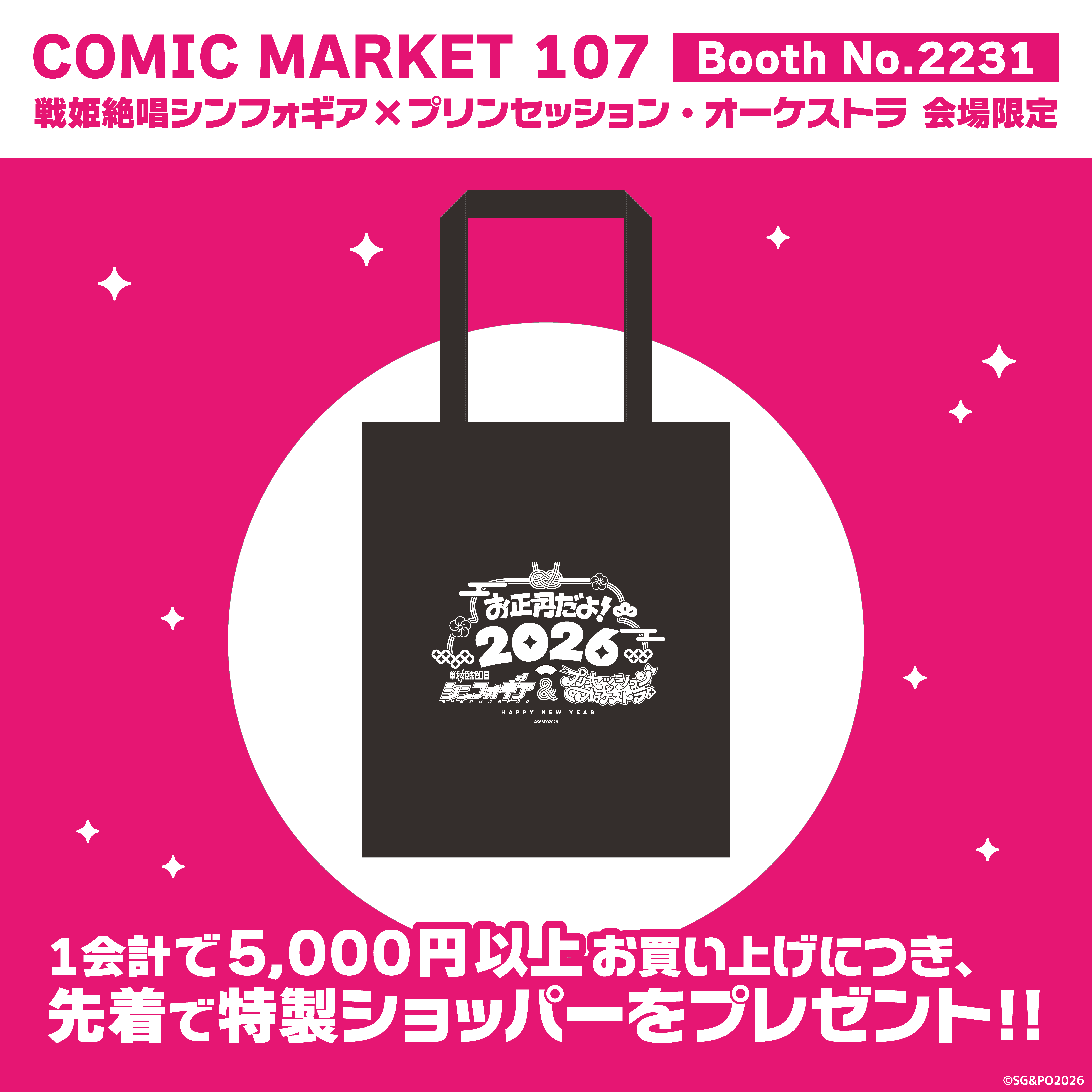 【C107 ブースNo.2231 戦姫絶唱シンフォギア×プリンセッション・オーケストラ】ブースにて、1会計で5000円(税込)以上お買い上げにつき、先着で特製ショッパーを1枚プレゼントいたします。